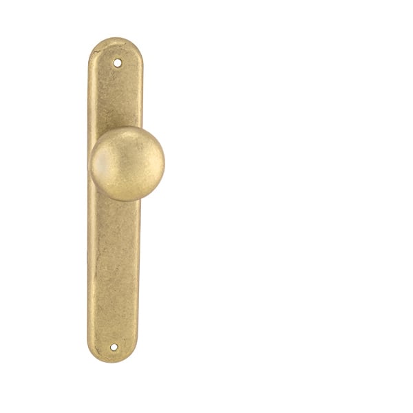 The door fixed straight ball on the oval shield is made of high quality materials - brass and is surface treated. The ball is 51mm in diameter and the shield measures 37mm x 247mm.