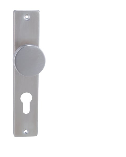 The door fixed straight ball on the square shield is made of high quality stainless steel, known as stainless steel, and is surface treated. The ball has a diameter of 49mm and the shield measures 42mm x 218mm.