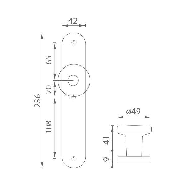 The door fixed straight ball on the long oval shield is made of high quality stainless steel, known as stainless steel, and is surface treated. The ball is 49mm in diameter and the shield measures 42mm x 236mm.