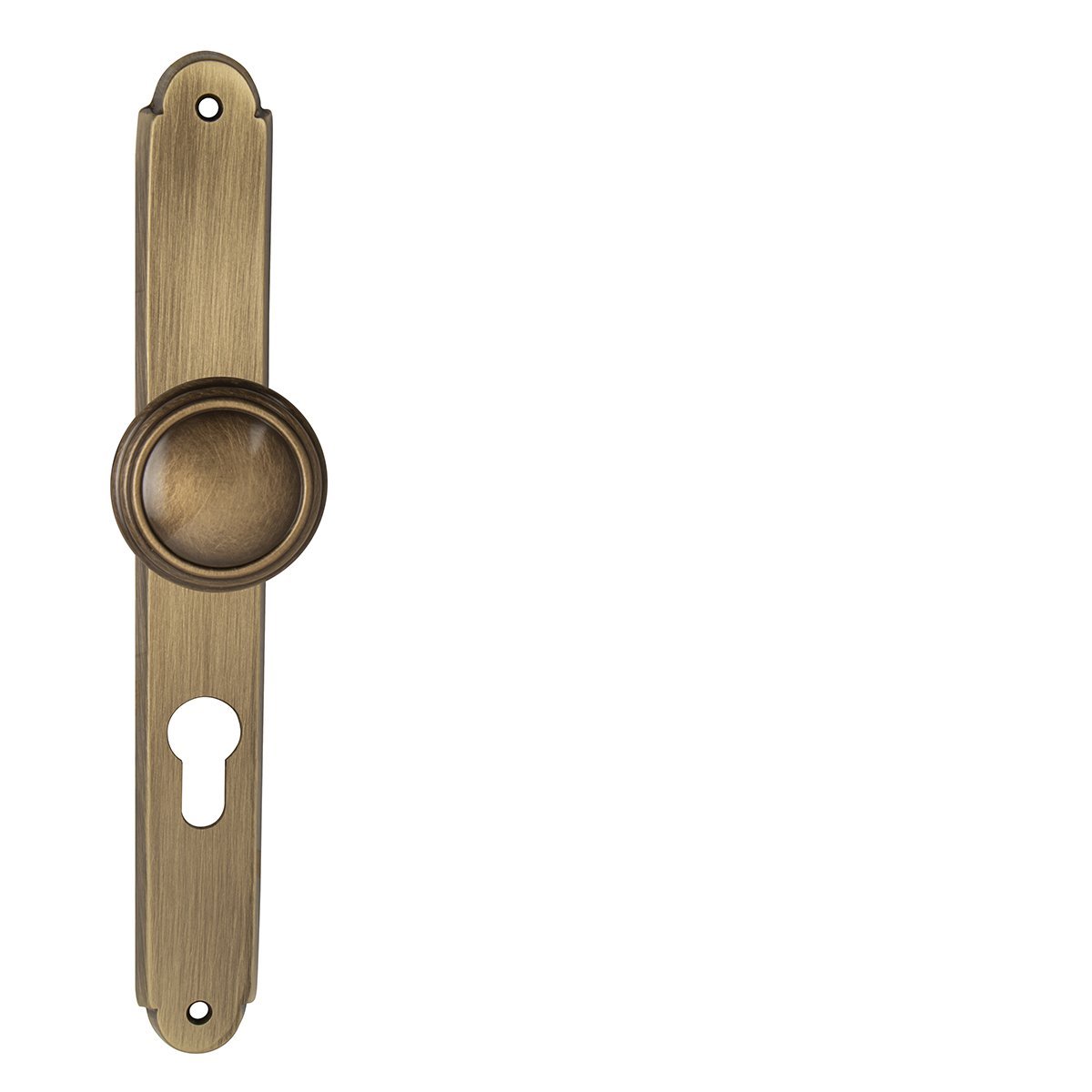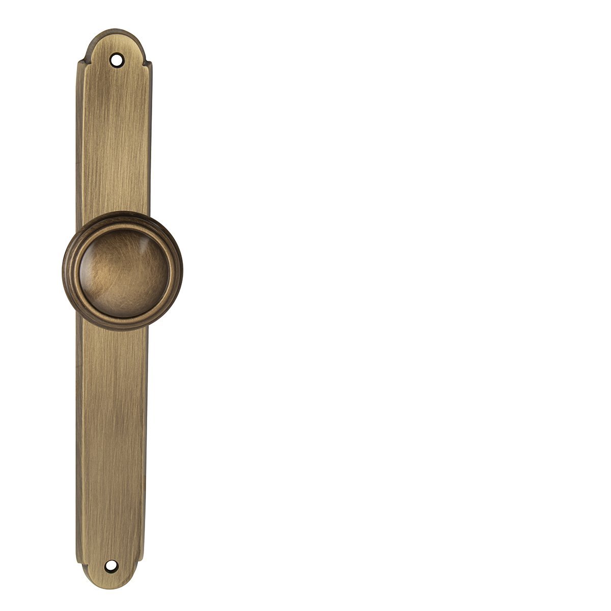 The door solid straight ball on the rustic shield is made of high quality materials - brass and is surface treated. The ball has a diameter of 49mm and the rustic shield measures 32mm x 255mm.