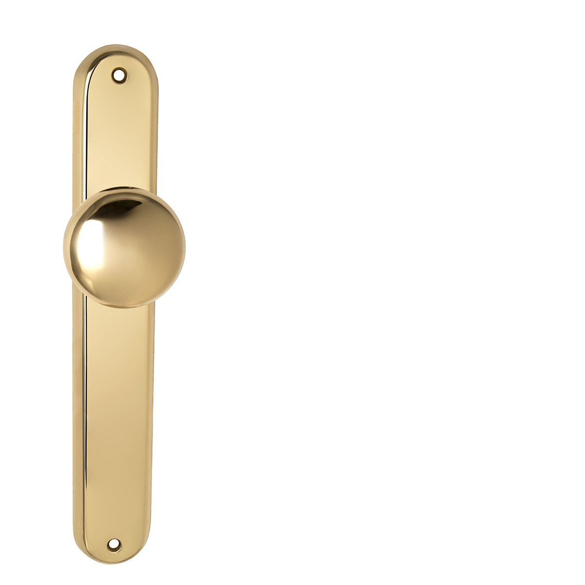 The door fixed straight ball on the oval shield is made of high quality materials - brass and is surface treated. The sphere has a diameter of 50 mm and the oval shield measures 37 mm x 240 mm.