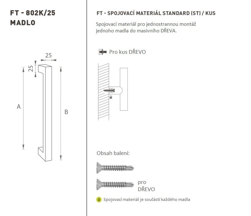FT - HANDLE code K02K 25x25 mm ST pc Door Handle
