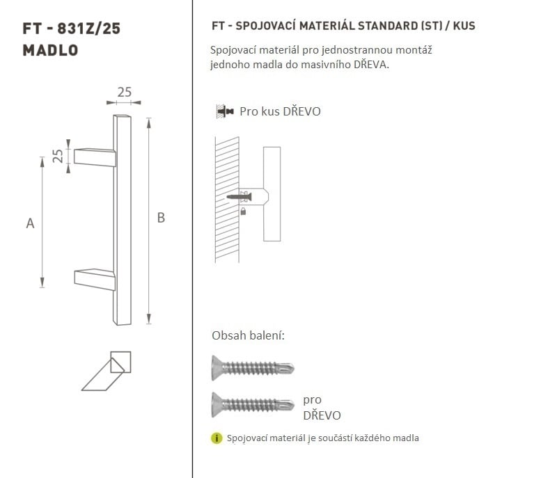 FT - HANDLE code K31Z 25x25 mm ST pc Door Handle