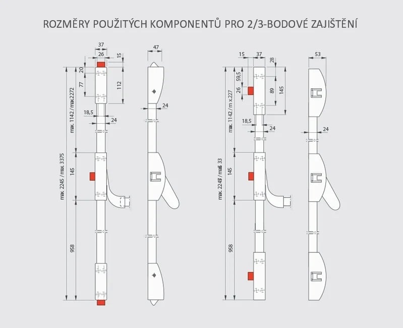 3-point panic fittings for 2-wing doors on escape routes.1-point horizontal locking, 2 points vertical locking.It is necessary to use a closing coordinator and a self-closer, it is intended for fire and smoke-proof doors.Panic fittings enable...