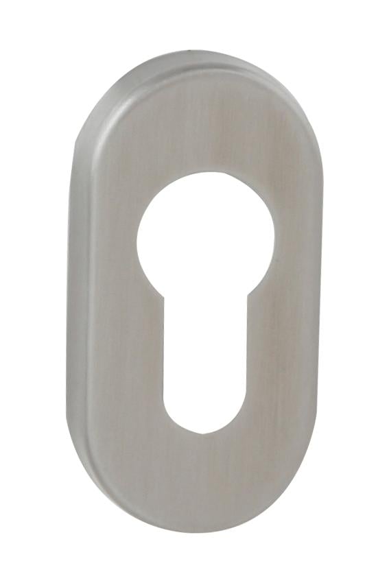 Oval rosette with PZ opening with dimensions of 60 x 30 mm, suitable for narrow door profiles.
