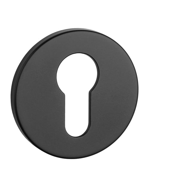 The round rosette is made of high quality materials - zamak and is surface treated. The rosette has a diameter of 52 mm, a thickness of 5 mm and an oval hole for an interior key (BB), a hole for a cylinder insert (PZ), a WC set with a built-in key.
