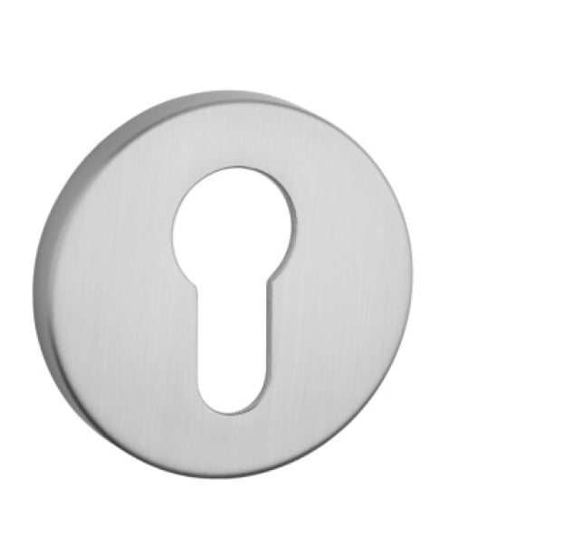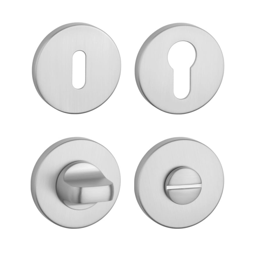 The round rosette is made of high quality materials - zamak and is surface treated. The rosette has a diameter of 52 mm, a thickness of 5 mm and an oval hole for an interior key (BB), a hole for a cylinder insert (PZ), a toilet set with a built-in key. The package contains 2 pieces of rosettes (a pair) and the toilet rosettes are included in the package as a set.