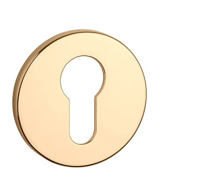 The round rosette is made of high quality materials - zamak and is surface treated. The rosette has a diameter of 52 mm, a thickness of 5 mm and an oval hole for an interior key (BB), a hole for a cylinder insert (PZ), a WC set with a built-in key.