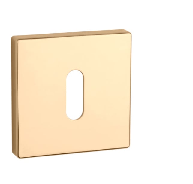 The square rosette is made of high quality materials - zamak and is surface treated. The rosette has a size of 52x52 mm, a thickness of 7 mm and an oval hole for an interior key (BB), a hole for a cylinder insert (PZ), WC set with a built-in key. The package contains 2 pieces of rosettes (a pair) and the toilet rosettes are in the package as a set.
