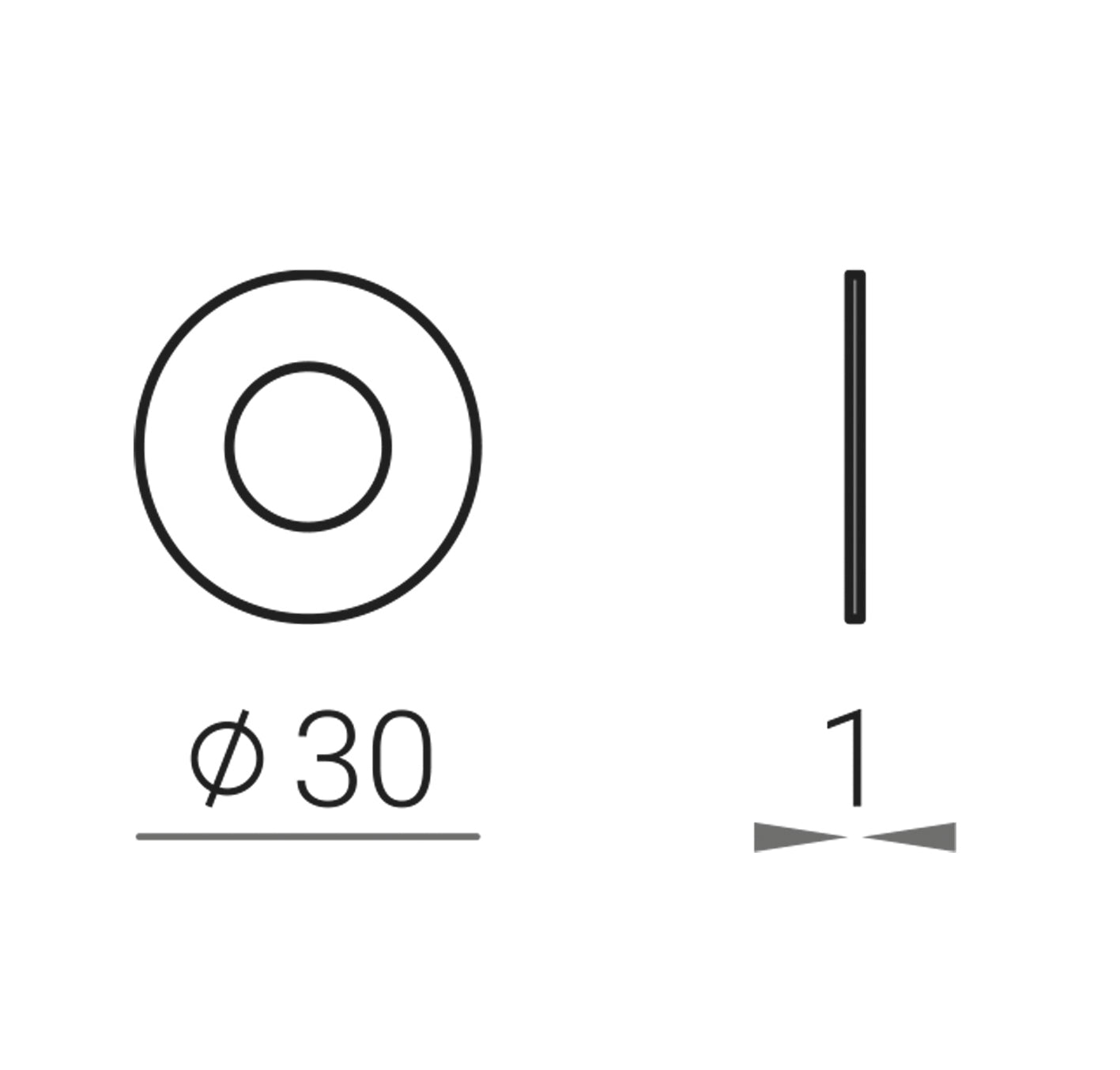 The round rosette under the handle is made of high-quality zamak material and has a surface treatment. The rosette has a diameter of 30 mm and a thickness of 1 mm. The rosettes can be combined with any handle from the NUDA collection.