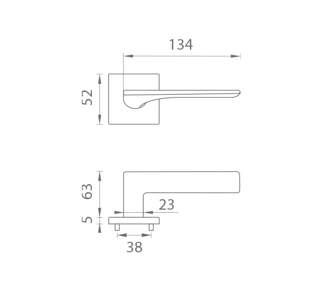 The rosette handle for interior doors with a square rosette is made of high-quality materials - zamak and has a surface treatment. The rosette measures 52x52 mm and is only 5 mm thick. The minimalist design of the rosette with high stability of the door handle has a subtle effect, leaving room for the design of the handle itself to stand out.