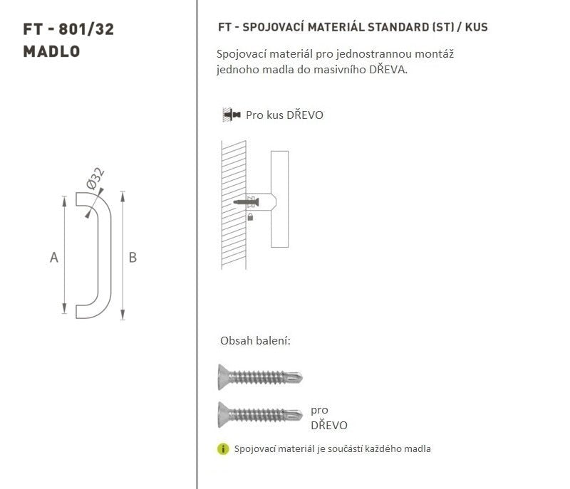 The door handle is made of high-quality stainless steel, known as stainless steel, and is surface treated. The handle profile is 32 mm. The handle includes screws 6 x 45 mm.