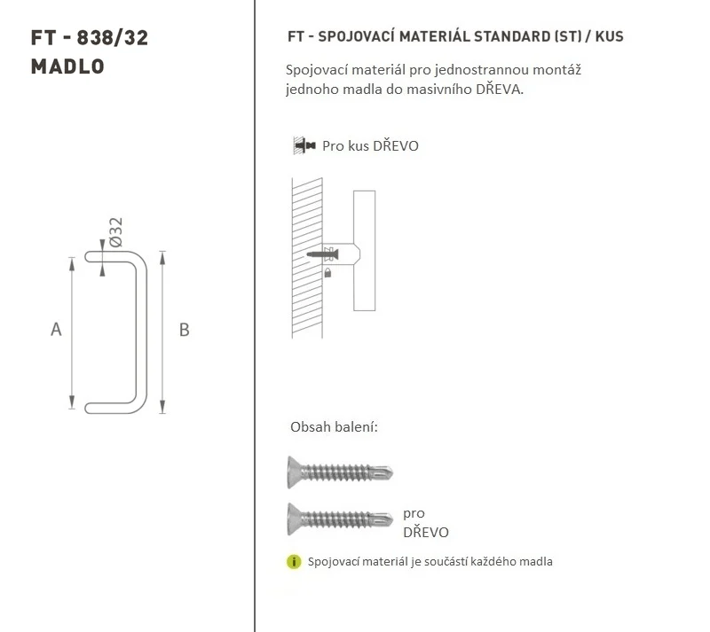 The door handle is made of high-quality stainless steel, known as stainless steel, and is surface treated. The handle profile is 32 mm. The handle includes screws 6 x 45 mm.