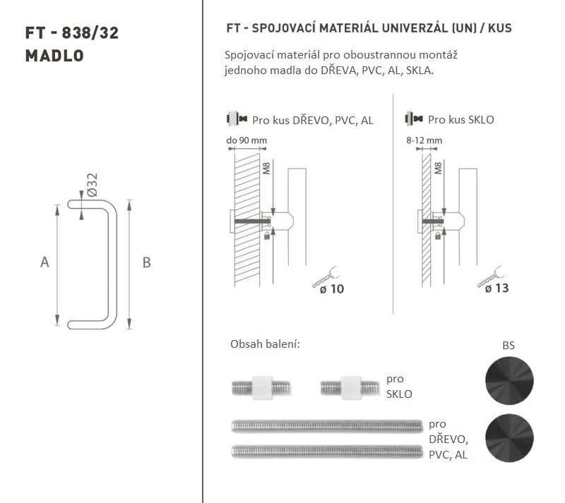 The door handle is made of high-quality stainless steel, known as stainless steel, and is surface treated. The handle profile is ƒÆ’†€™ƒ€ ¢‚¬„¢ƒÆ’¢‚¬ ƒ¢¢€š¬¢€ž¢ƒÆ’†€™ƒ¢¢€š¬‚¹ƒÆ’¢‚¬¦ƒ¢¢€š¬…€œ 32 mm. The UNIVERSAL (UN) set contains fasteners for two-sided mounting of one handle in wood, PVC, AL, glass.