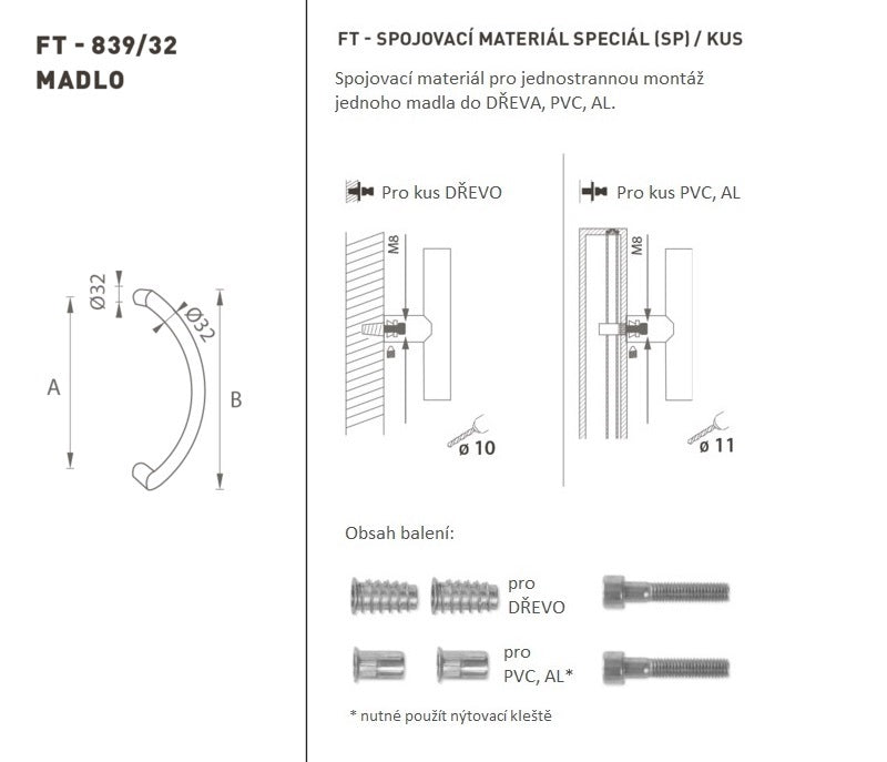 The door handle is made of high-quality stainless steel, known as stainless steel, and is surface treated. The handle profile is 32 mm. The SPECIAL (SP) set contains fasteners for one-sided mounting of one handle in wood, PVC, AL.