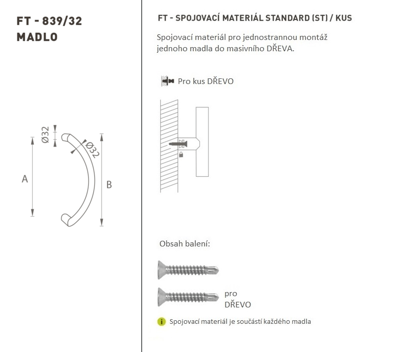 The door handle is made of high-quality stainless steel, known as stainless steel, and is surface treated. The handle profile is 32 mm. The handle includes screws 6 x 45 mm.