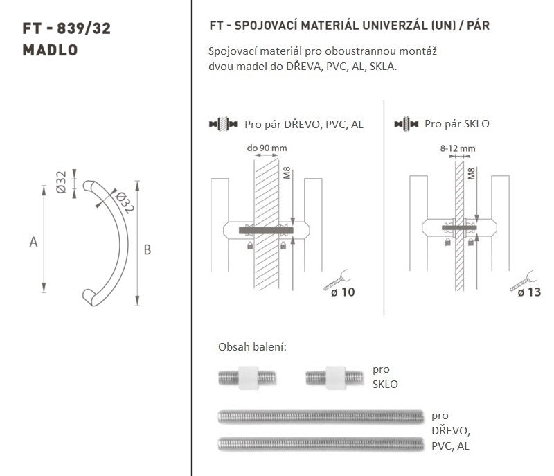 The door handle is made of high-quality stainless steel, known as stainless steel, and is surface treated. The handle profile is ƒÆ’†€™ƒ€ ¢‚¬„¢ƒÆ’¢‚¬ ƒ¢¢€š¬¢€ž¢ƒÆ’†€™ƒ¢¢€š¬‚¹ƒÆ’¢‚¬¦ƒ¢¢€š¬…€œ 32 mm. The UNIVERSAL (UN) set contains fasteners for double-sided mounting of two handrails in wood, PVC, AL, glass.