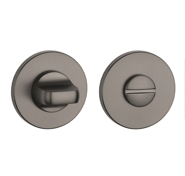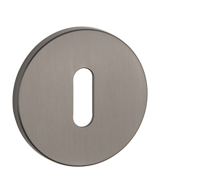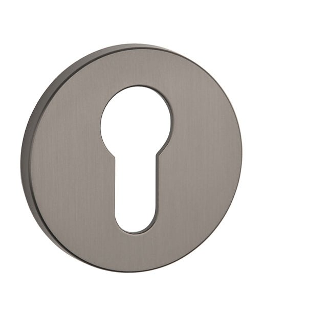 The round rosette is made of high quality materials - zamak and is surface treated. The rosette has a diameter of 52 mm, a thickness of 5 mm and an oval hole for an interior key (BB), a hole for a cylinder insert (PZ), a toilet set with a built-in key.