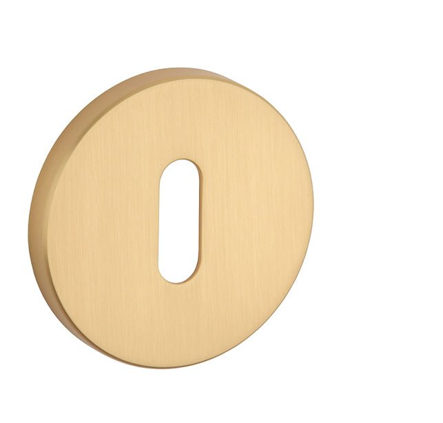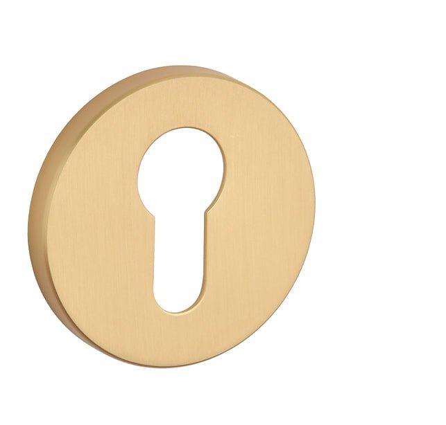 The round rosette is made of high quality materials - zamak and is surface treated. The rosette has a diameter of 52 mm, a thickness of 7 mm and an oval hole for an interior key (BB), a hole for a cylinder insert (PZ), a WC set with a built-in key.