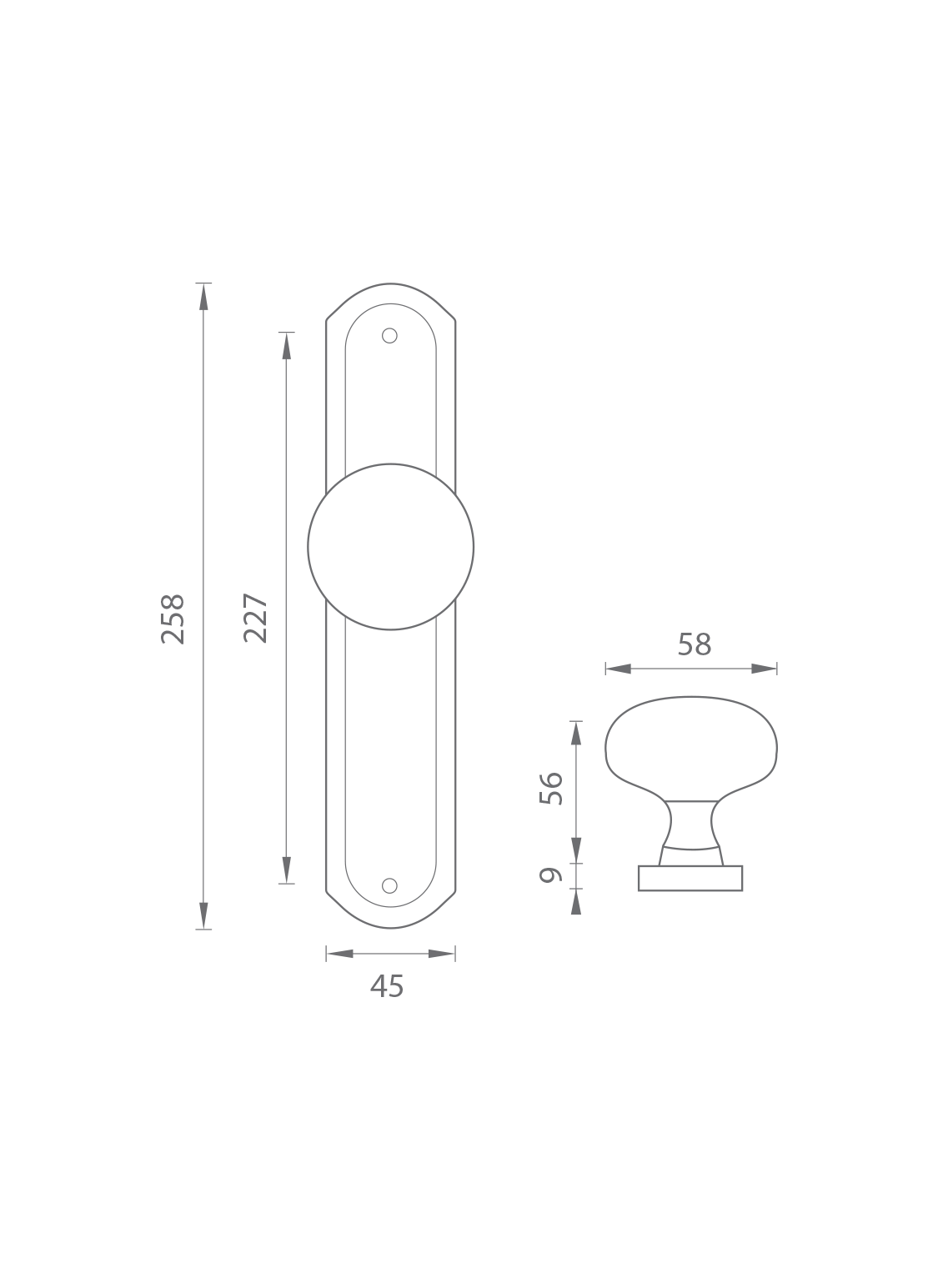 The solid straight door ball on the oval rustic shield is made of high-quality materials - zamak and has a surface treatment. The ball has a diameter of 58 mm and the shield has dimensions...