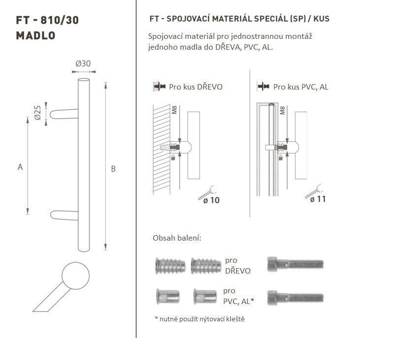 The door handle is made of high-quality stainless steel, known as stainless steel, and is surface treated. The handle profile is 30 mm. The SPECIAL (SP) set contains fasteners for one-sided mounting of one handle...