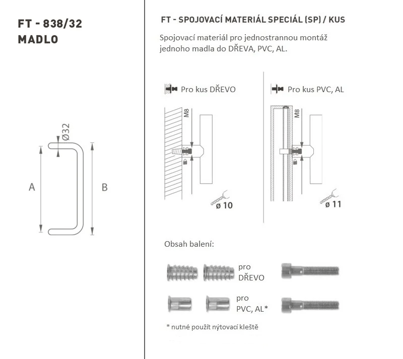 The door handle is made of high-quality stainless steel, known as stainless steel, and is surface treated. The handle profile is 32 mm. The SPECIAL (SP) set contains fasteners for one-sided mounting of one handle...