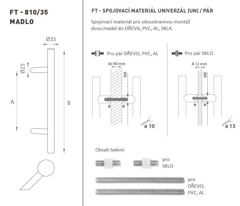 The door handle is made of high-quality stainless steel, known as stainless steel, and is surface treated. The handle profile is 30 mm. The UNIVERSAL (UN) set contains fasteners for double-sided mounting of two handles...
