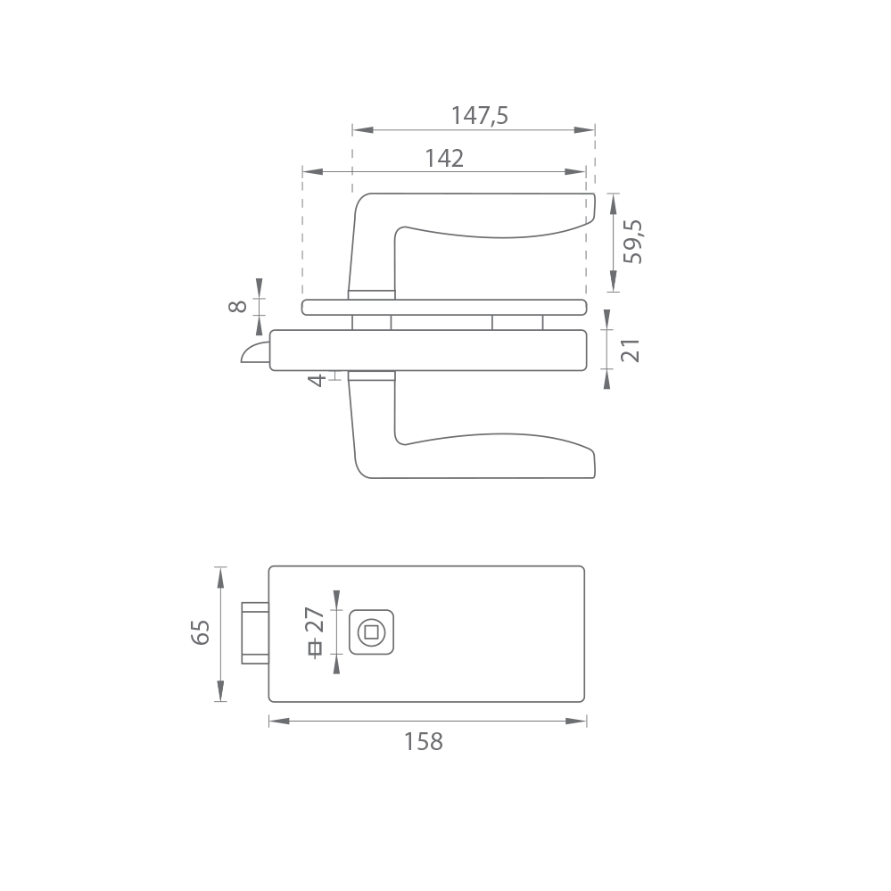 The opening for the handle contains a limiting mechanism for maximum elimination of the play of the square. The lock mechanism allows you to adjust the spring force and helps to keep the handle in a horizontal position.