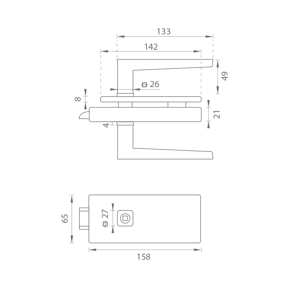 The opening for the handle contains a limiting mechanism for maximum elimination of the play of the square. The lock mechanism allows you to adjust the spring force and helps to keep the handle in a horizontal position.