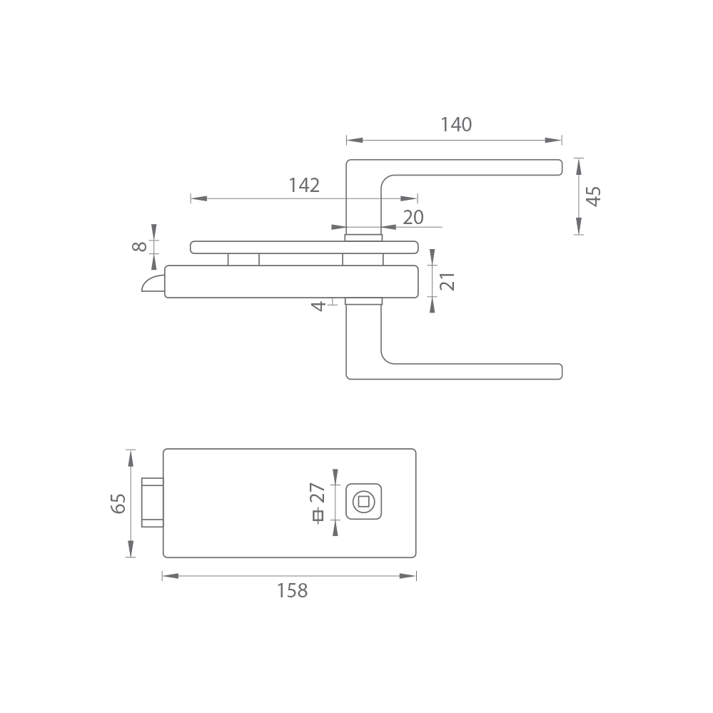 The opening for the handle contains a limiting mechanism for maximum elimination of the play of the square. The lock mechanism allows you to adjust the spring force and helps keep the handle in a horizontal position.