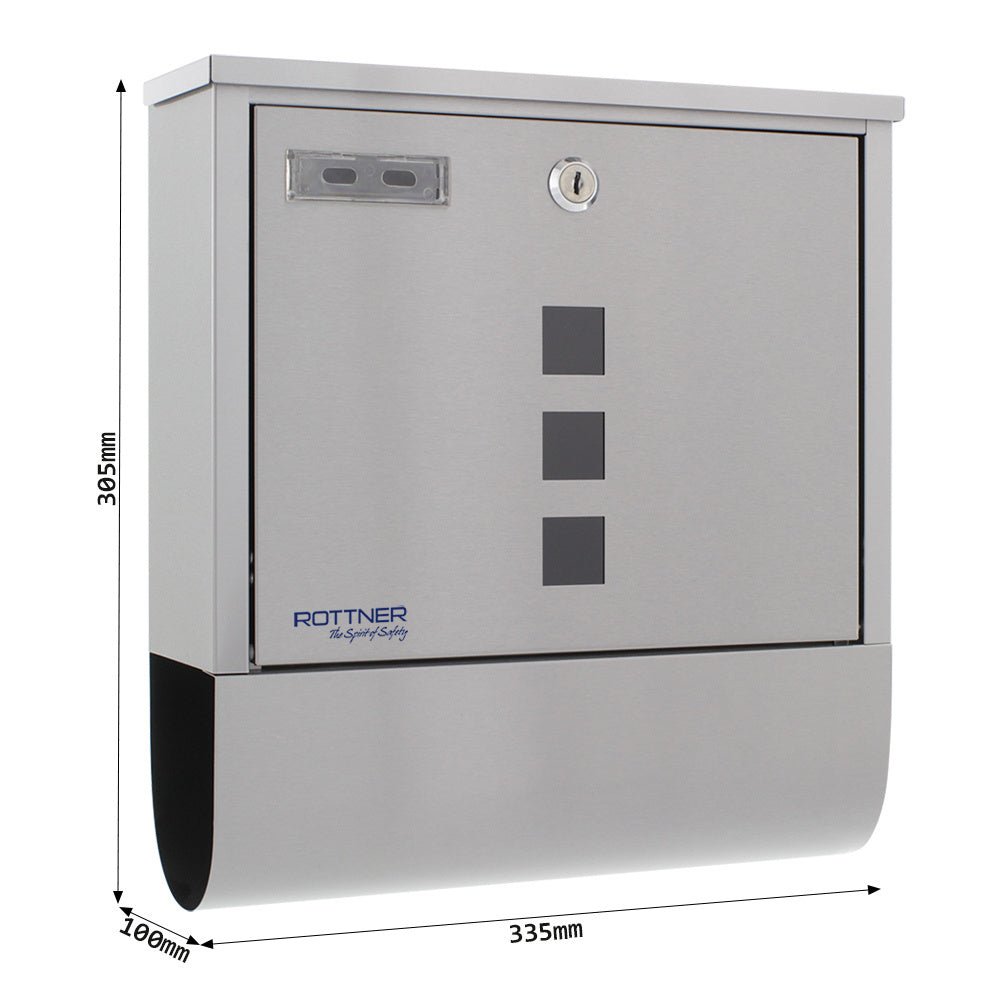 The COSTA mailbox with a modern design is made of high-quality material - stainless steel. It is resistant to adverse weather effects, therefore it is suitable for both the exterior and the interior of apartment buildings. The upper opening is covered by a canopy and is ideal for formats up to A4 size. You can easily pick up the mail thanks to the large front door that swings down. There is space for a name tag in the upper left part of the box. The box is supplemented at the bottom with a box for newspapers and magazines. Three transparent windows quickly reveal whether the mailbox contains mail. The package also includes fixing material for the wall.