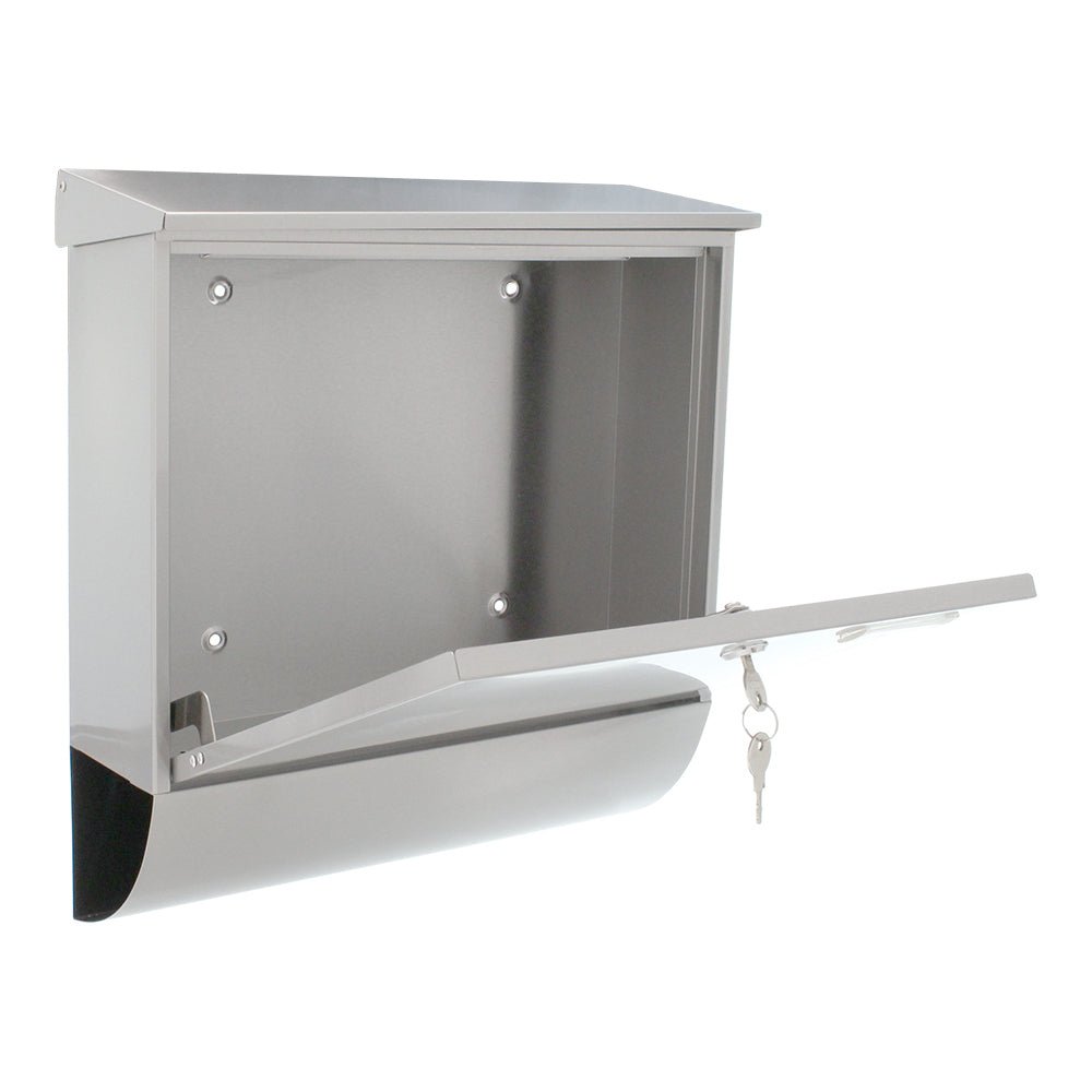 The EXPO mailbox is made of high-quality material - stainless steel. The top opening with canopy is also ideal for formats larger than A4. You can easily pick up the mail thanks to the large front door that swings down. In the upper right part of the box there is space for a name tag. The box is supplemented at the bottom with a round box for newspapers and magazines. The package also includes wall mounting material.ƒÆ’†€™ƒ€ ¢‚¬„¢ƒÆ’‚¢ƒ¢¢‚¬Å¡‚¬ƒ€¦‚¡ƒÆ’†€™ƒ¢¢€š¬…¡ƒÆ’¢‚¬Å¡ƒ€š‚