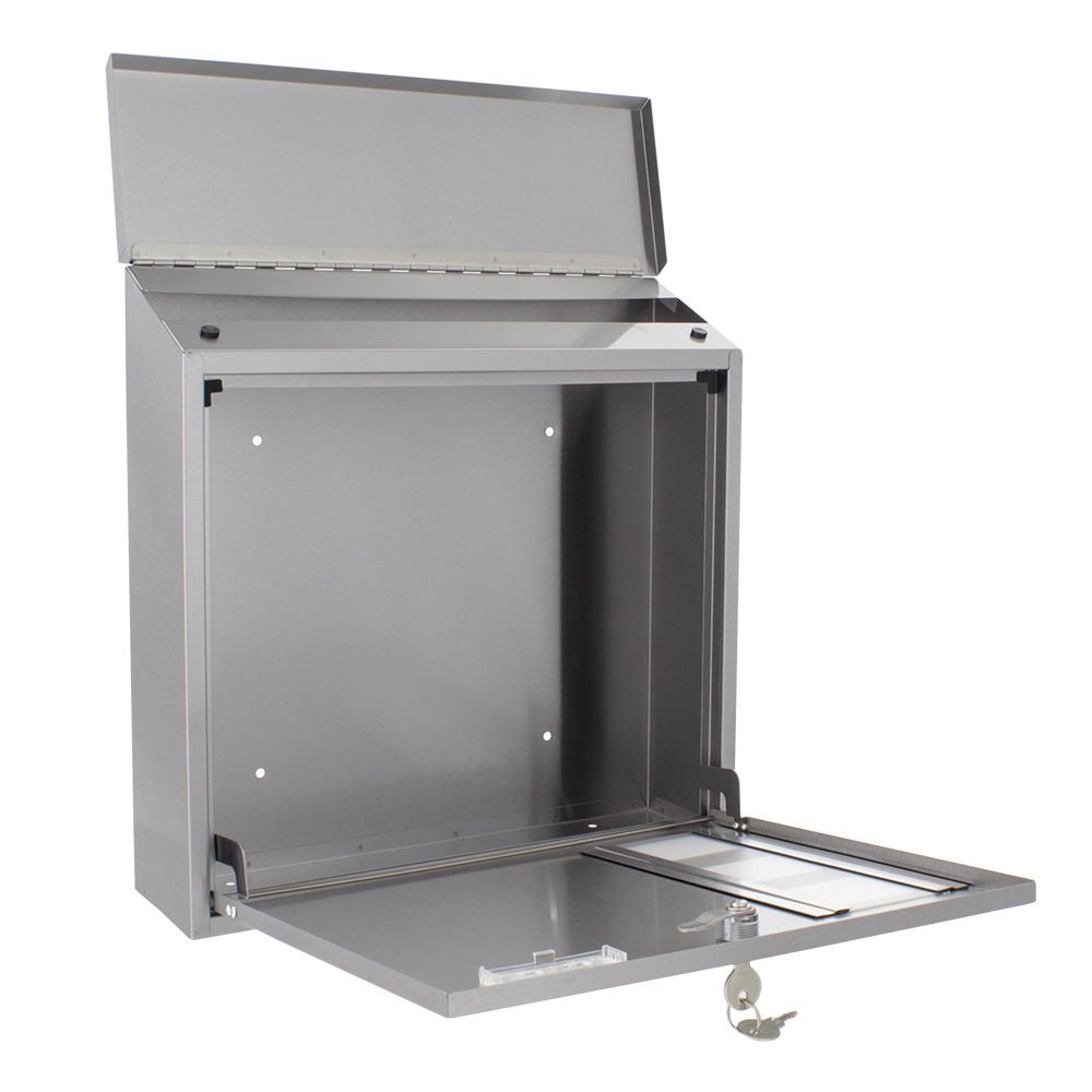 The MURO mailbox is made of high-quality material - stainless steel. It has a top throw with a cover that protects the parcels from rain and dirt.ƒÆ’†€™ƒ€ ¢‚¬„¢ƒÆ’‚¢ƒ¢¢‚¬Å¡‚¬ƒ€¦‚¡ƒÆ’†€™ƒ¢¢€š¬…¡ƒÆ’¢‚¬Å¡ƒ€š‚ You can easily pick up the mail thanks to the large front door that swings down. There is space for a name tag in the upper left part of the box. Three transparent windows quickly reveal whether the mailbox contains mail. The package also includes fixing material, with which you can easily fasten the mailbox to the wall through the holes on the back.