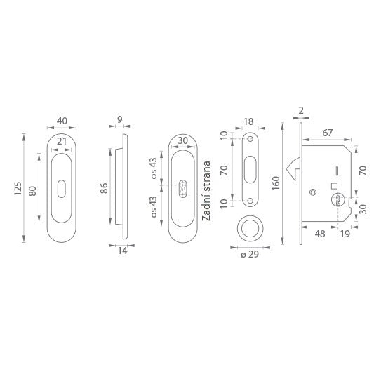 FT - Oval sliding door set - BB / S - shells and handles for sliding doors