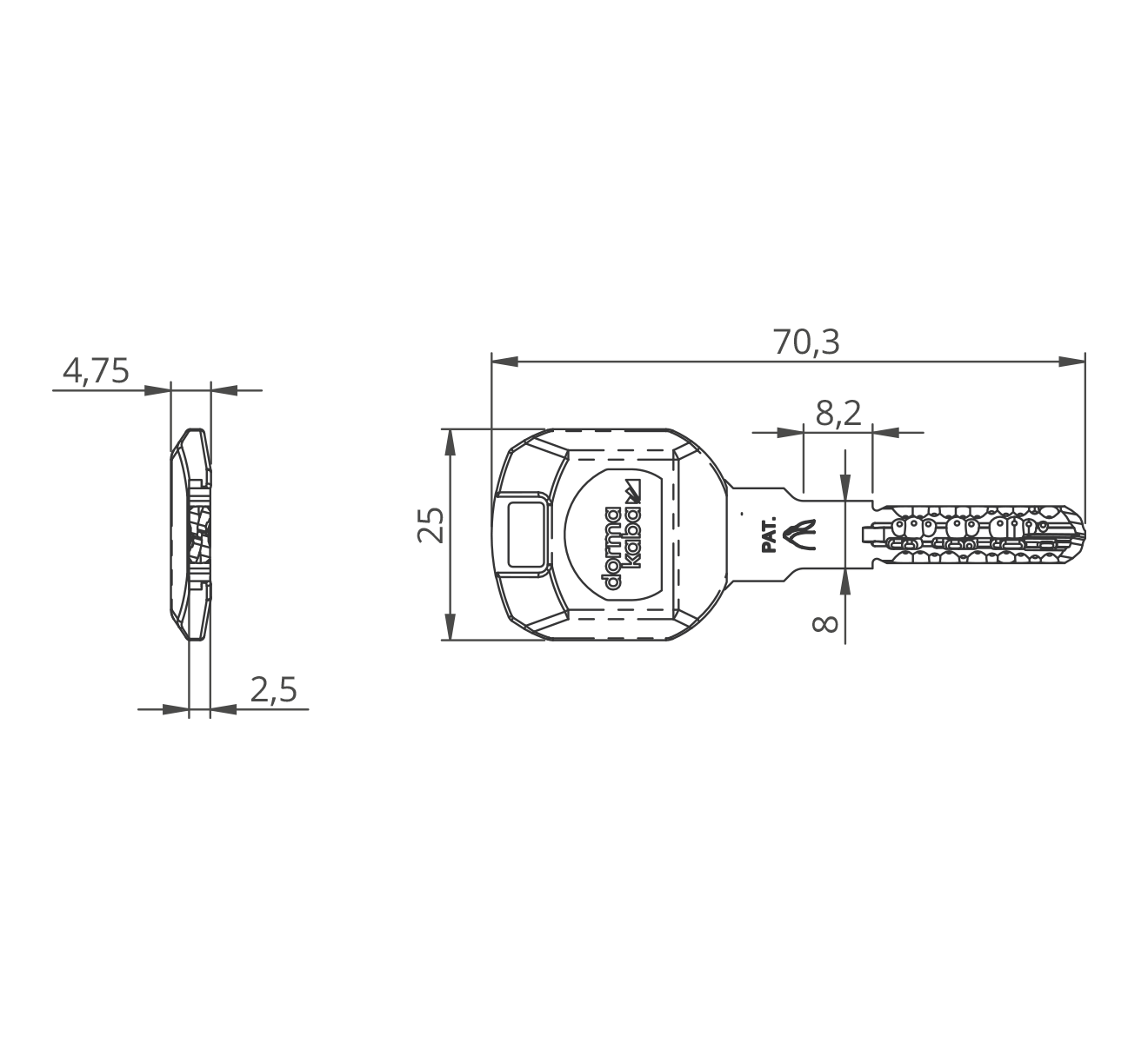 DORMAKABA DK - EXPERT plus S own key dimpled LARGE KEY clip - EXPERT keys
