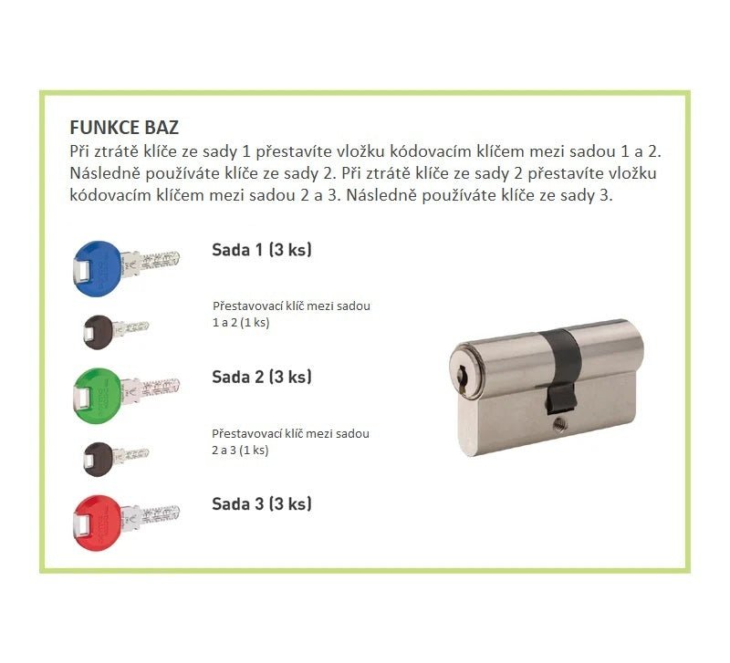 Additional BAZ recoding function when a key is lost.When you lose a key from set 1, you reset the insert with the coding key between set 1 and 2. Then you use the keys from...