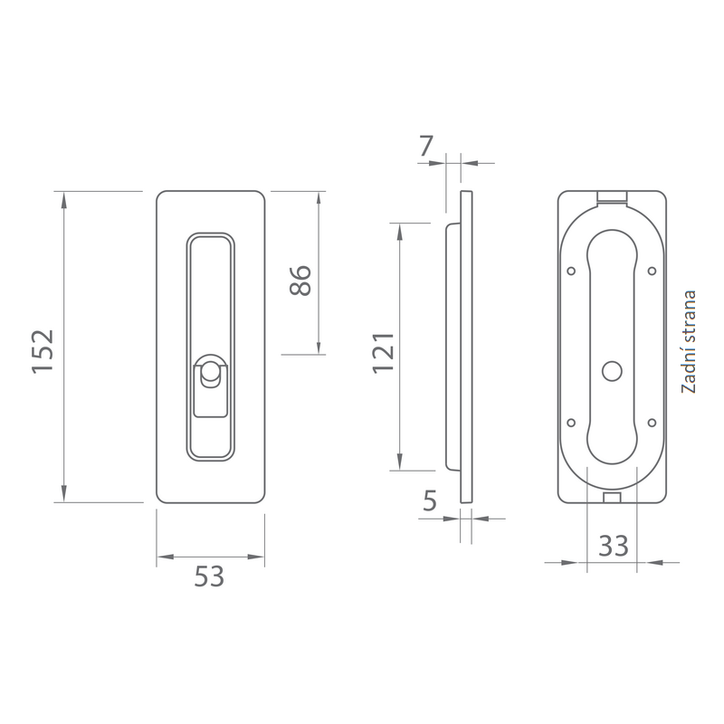 The square bowl with toilet key for the sliding door is made of high-quality material brass/zamak - zinc alloy and has a surface treatment. Dimensions: Width: 53 mm Height: 152 mm Mortise: 7 mm Assembly...