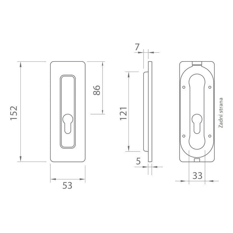 The square shell with a PZ hole for the insert for the sliding door is made of high-quality material brass/zamak - zinc alloy and has a surface treatment.Dimensions:Width: 53 mmHeight: 152 mmEmbedding: 7 mmAssembly of...