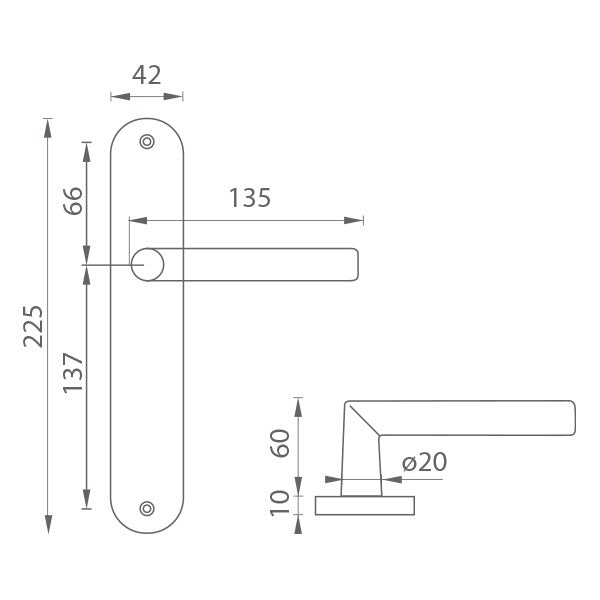 The shield handle on the interior door with an oval shield is made of high-quality stainless steel, known as stainless steel, and is surface treated. The oval shield measures 42mm x 225mm.