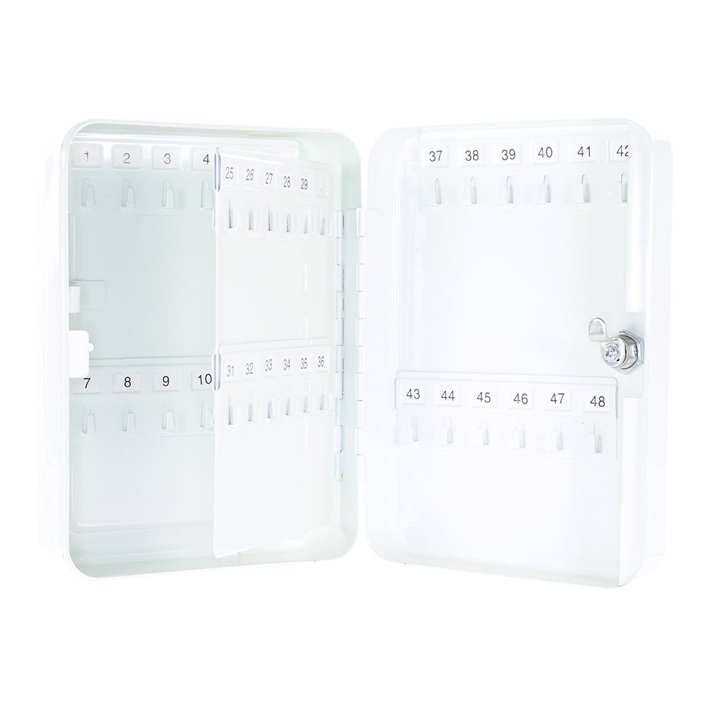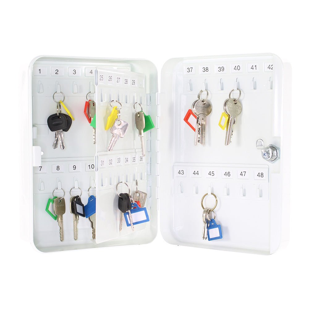 The TS48 key box allows you to keep an overview of all your keys. The cabinet is suitable for companies, but also for households. The hooks are firmly mounted and 48 keys can be hung on them. The package includes the necessary anchoring material for wall mounting.