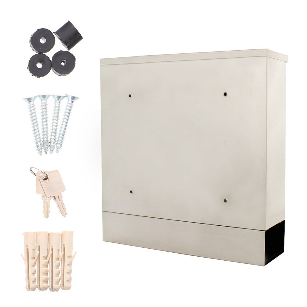 The HOCHHAUS SET II mailbox is made of high-quality material - stainless steel. The front opening is protected by a cover from dirt and rainwater. You can easily take out the mail thanks to the large front door that swings down. The box is supplemented at the bottom with a box for newspapers and magazines. The advantage of the clipboard is that it can be assembled into reports. The package also includes fixing material for the wall.