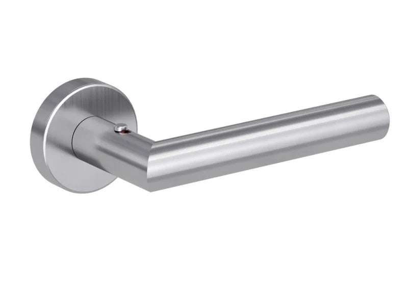 The rosette handle on an interior door with a round rosette is made of high-quality stainless steel, known as stainless steel, and is surface treated. The rosette has a diameter of 51 mm and a...