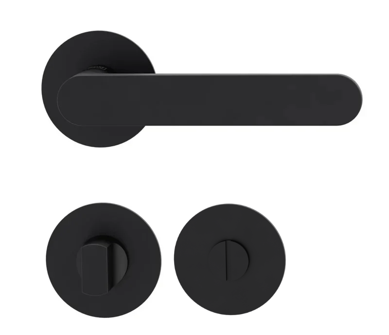 The handle mechanism includes a return spring. The protrusions on the rosette prevent it from turning, and the screws for screwing through the entire width of the door guarantee a stronger and more stable fitting of the fittings.