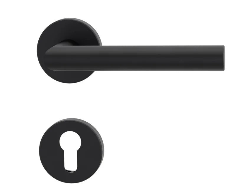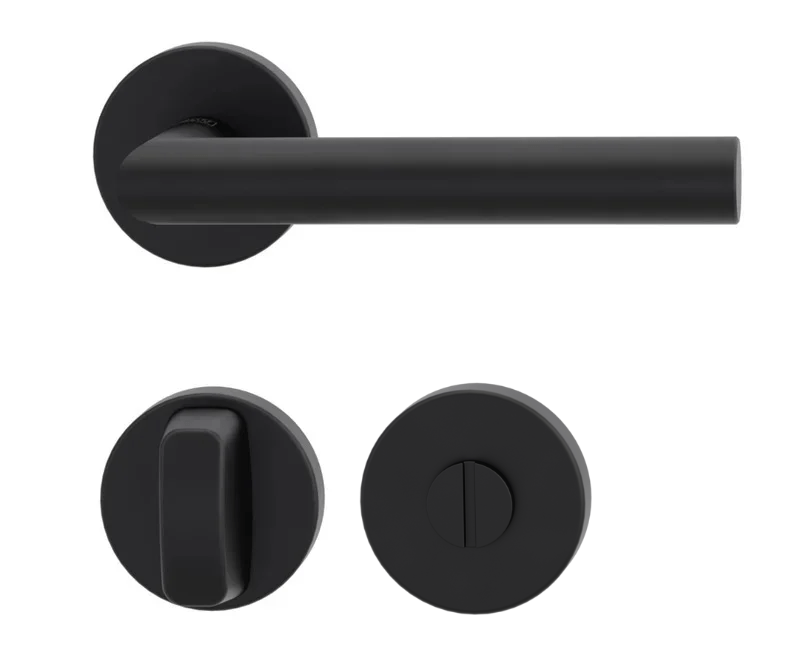 The handle mechanism includes a return spring. The protrusions on the rosette prevent it from turning, and the screws for screwing through the entire width of the door guarantee a stronger and more stable fitting of the fittings.