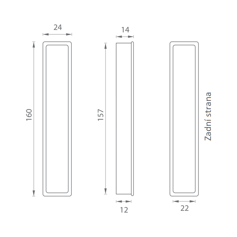 The hinged handle without a hole is made of high quality materials - zamak (zinc alloy) and is surface treated. The price is for 1 pc. Dimensions:Height: 160 mmWidth: 24 mmEdge: 12 mm