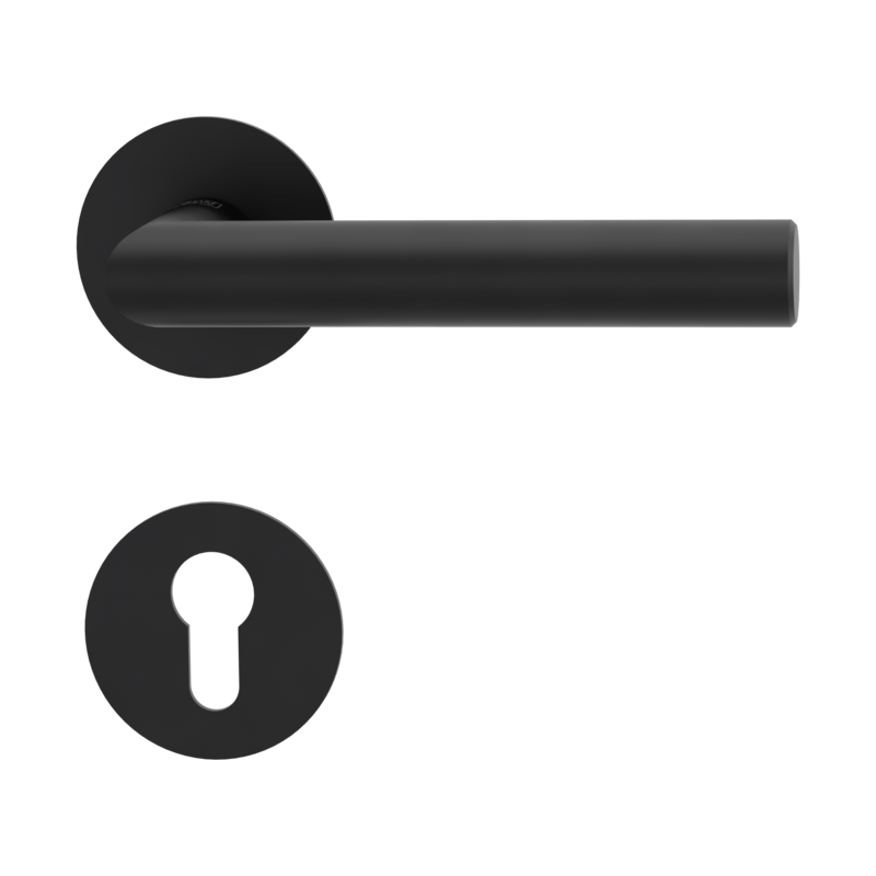 The rosette handle LUCIA PIATTA S on an interior door with a round rosette is made of high-quality stainless steel, known as stainless steel, and is surface treated. The rosette has a diameter of 54...
