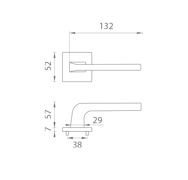 The rosette handle for an interior door with a square rosette is made of high-quality materials - zamak and has a surface treatment. The rosette measures 52x52 mm and is only 7 mm thick. The minimalist design of the rosette with high stability of the door handle has a subtle effect, leaving room for the design of the handle itself to stand out.