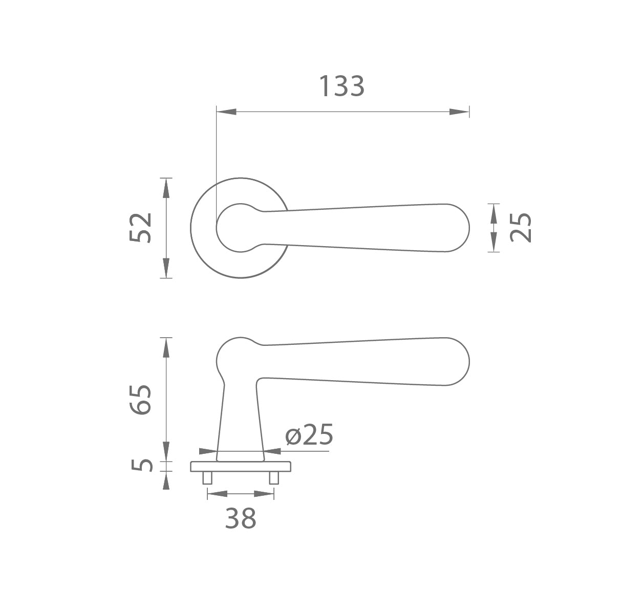 The rosette handle ROSEMARY for interior doors with a round rosette is made of high-quality materials - zamak and has a surface treatment. The rosette has a diameter of 52 mm and a thickness of only 5 mm. The minimalist design of the rosette with high stability of the door handle has a subtle effect, leaving room for the design of the handle itself to stand out.