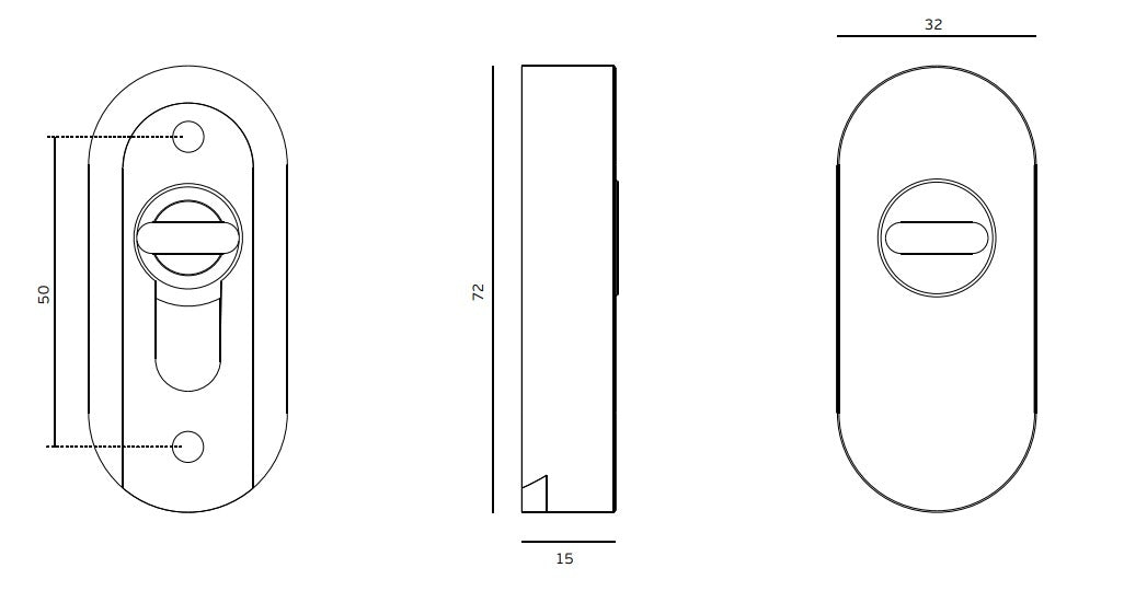 Safety narrow oval rosette with cylinder cover is made of quality material, stainless steel and is surface treated.Dimensions: 32 x 72 mm Thickness: 15 mm Package includes: 1 pc