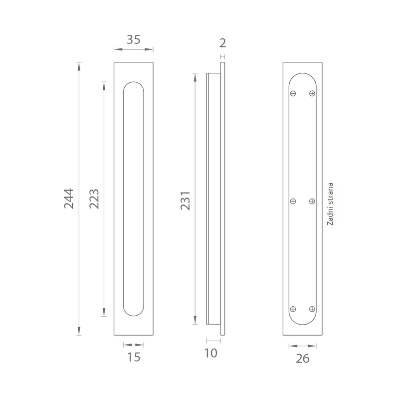 The square shell without opening for the sliding door is made of high-quality brass material and has a surface treatment. It features a beautiful design and guarantees durability and safety of use. The price is per piece.